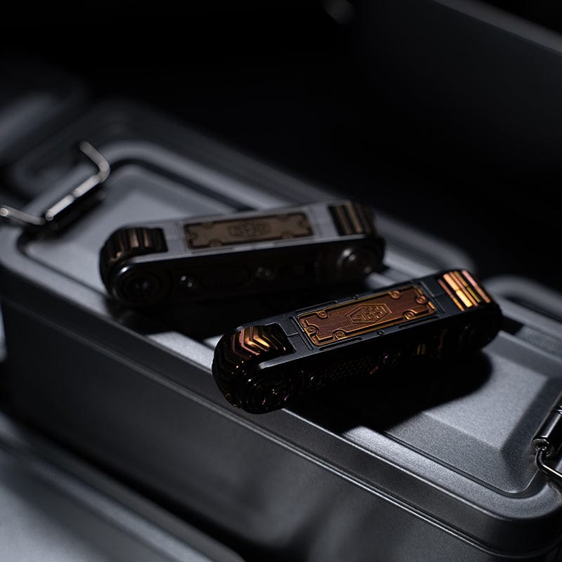 - The specialized lanyard bead and Horseshoe Buckle for Zirconium Cyber Core.These are designed by BLACKREEF. The body of the bead and horseshoe buckle is made of zirconium, with a polished surface treatment.The design is full of cyber style, the tire pattern on the horseshoe buckle, the rotatable main body on the bead, and the baked golden color on the bead of top and bottom all echo the Zirconium Cyber one by one. It can also install 6 tritium tubes for glow-in-the-dark!